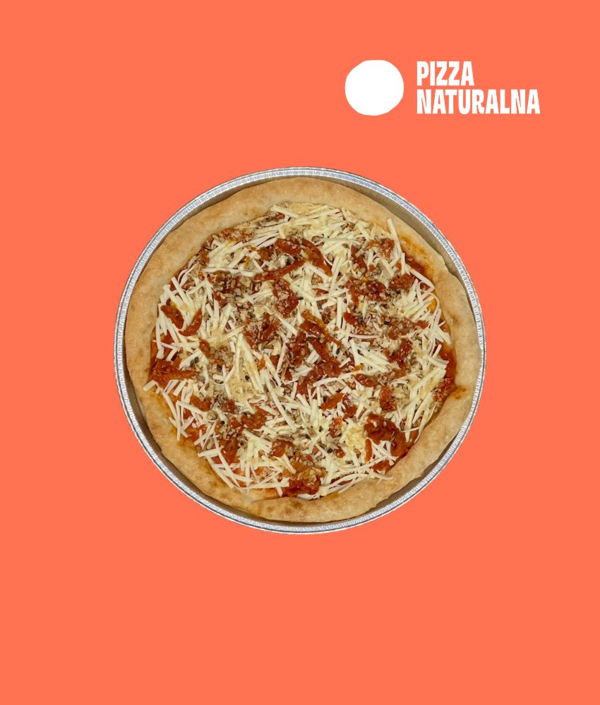 Skład: sos pomidorowy, mozarella violife, suszone pomidory, pestki słonecznika, płatki drożdżowe